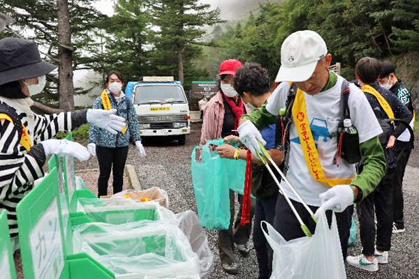 登山道清掃、ゴミ袋の配布による美化PR活動を実施。