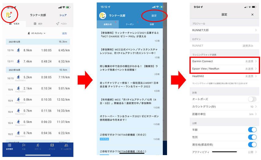 - エントリーとTATTAは、同じRUNNET IDを使用することで連携されます。