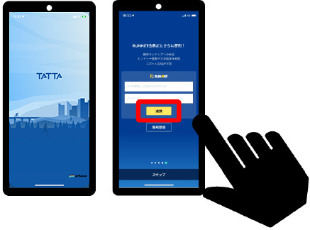 - Step2『TATTA』を起動させ、RUNNETのID・パスワードを入力し、[連携]をタップしてください。