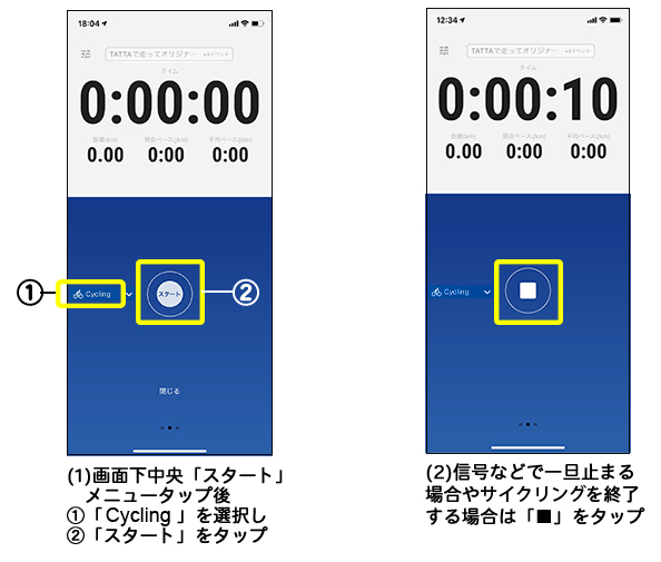 - (TATTAを使って走ったことがない方は)本番走前に、TATTAを起動して試走を行ってください。